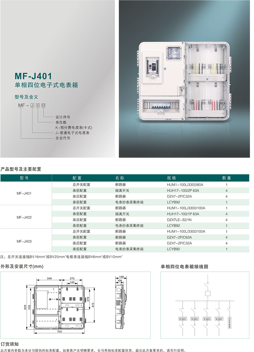 MF-K401AD 單相四位插卡式電表箱上下結(jié)構(gòu)
