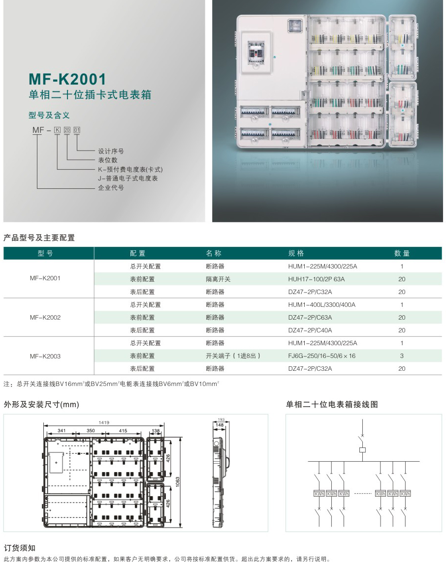 MF-K2001 單相二十位插卡式電表箱